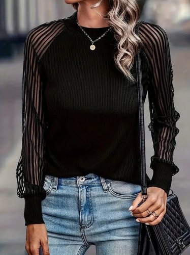 Damska bluzka na ramiączkach z długim rękawem i okrągłym dekoltem, wykonana z tiulu