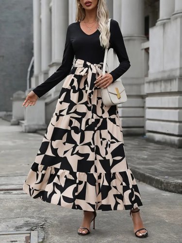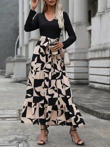 Sukienka damska z długim rękawem i okrągłym dekoltem