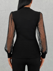 Bluzka damska z czarnym golfem i tiulowymi detalami na rękawach 6160