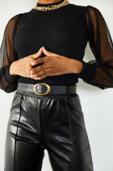 • Bluzka damska z czarnym golfem i tiulowymi detalami na rękawach 6160