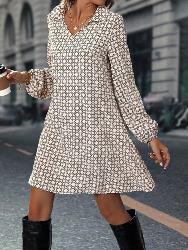 • Damska sukienka mini z długim rękawem i kołnierzykiem, z wzorem modalu