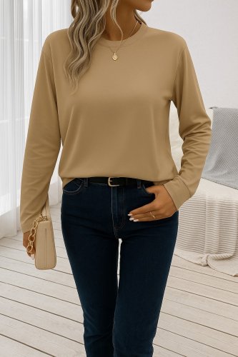 Bluzka damska z wiskozy z długim rękawem i okrągłym dekoltem