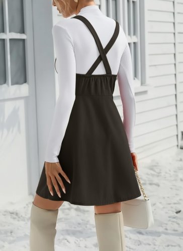• Damska sukienka mini z zamszu na ramiączkach i zapinana na guziki