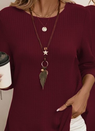 Bluzka damska z długim rękawem i okrągłym dekoltem z tyłu, zapinana na guziki, o fakturze wafla