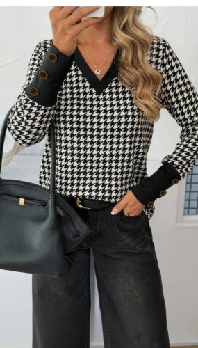 • Bluzka damska z długim rękawem i dekoltem w serek, z wzorem z pojedynczego jerseyu