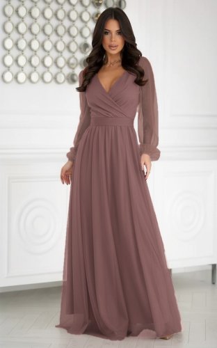• Damska sukienka z długim rękawem, dwurzędowym kołnierzykiem, paskiem w talii i tiulem, importowana z krepy
