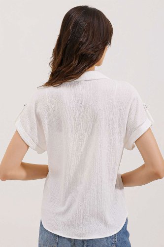 • 20187 Koszula dzianinowa z krótkim rękawem i oversize'owym krojem – biała