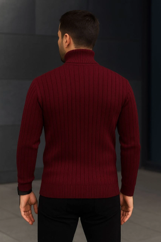 Męski sweter z prążkowanej dzianiny, 2-częściowy komplet, bordowy, czarny, regularny golf, pełny dekolt, sweter model