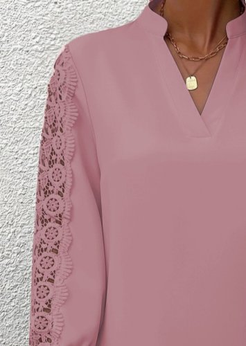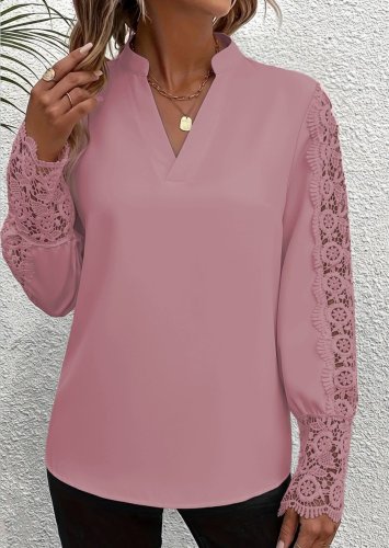 • Damska bluzka z długim rękawem i okrągłym dekoltem, ozdobiona koronką i importowanym krepem
