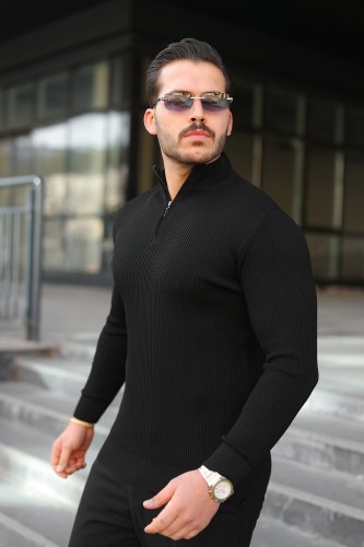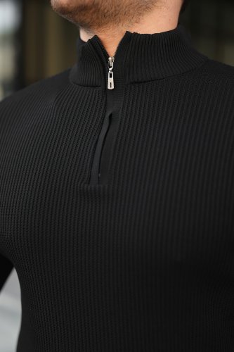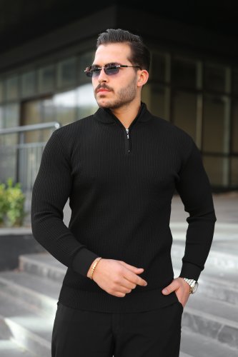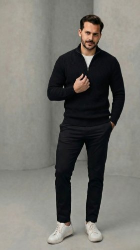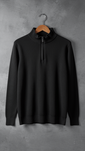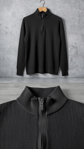 • Męski sweter z golfem, kołnierzem zapinanym na zamek i długim rękawem