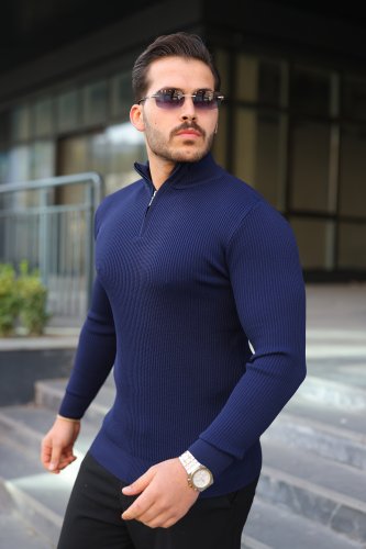 Męski sweter z golfem, kołnierzem zapinanym na zamek i długim rękawem
