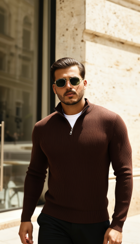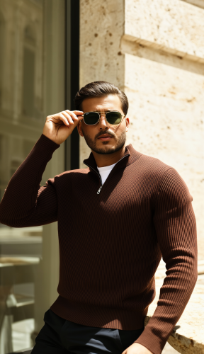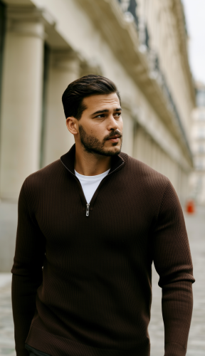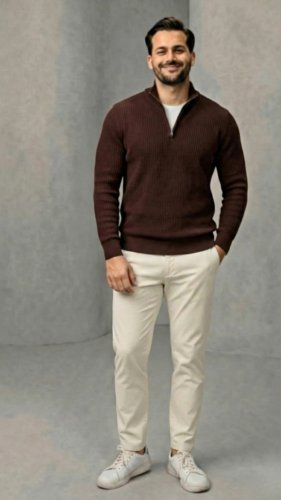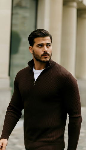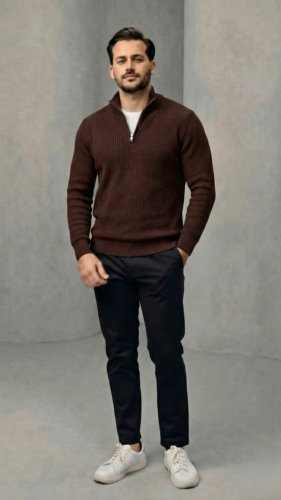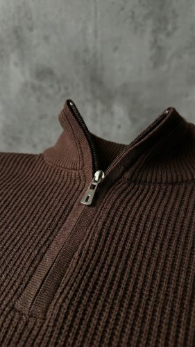 • Męski sweter z golfem, kołnierzem zapinanym na zamek i długim rękawem
