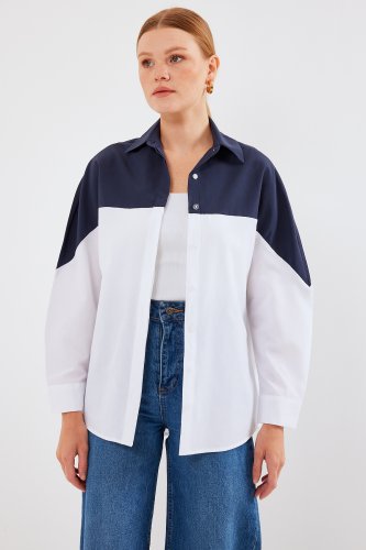 • Koszula oversize w blokowym kolorze 20221 – granatowa