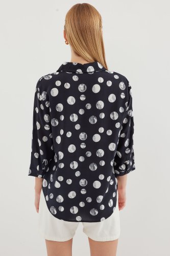 20243 Koszula z wiązaniem z przodu i wzorem – czarna