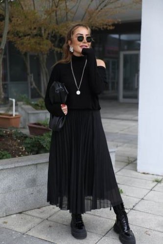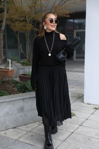• Dwuczęściowa sukienka damska z dzianiny z zakładkami i detalami z tiulu