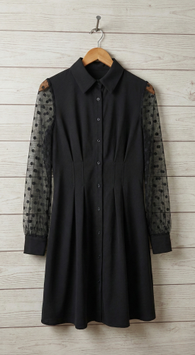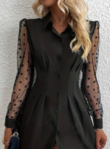 • Damska sukienka mini z długim rękawem, kołnierzykiem i guzikami, importowana z krepy