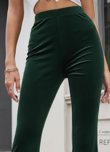 • Damskie aksamitne spodnie z wysokim stanem, rozszerzające się ku nogawce