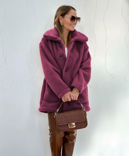 Płaszcz damski z długim rękawem, kołnierzem i guzikami z przodu, Welsoft