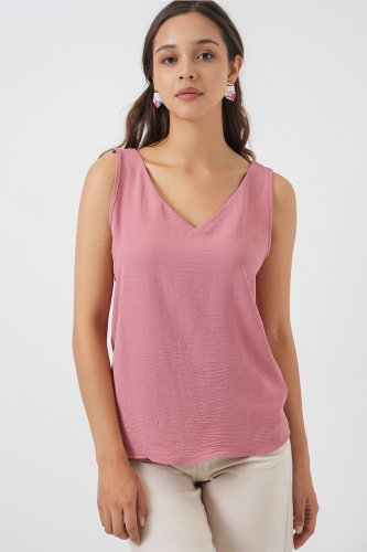 Bluzka z dekoltem w serek i bez rękawów 950 - Dusty Rose