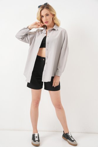 • 3900 Oversize Długa koszula basic – jasnoszara