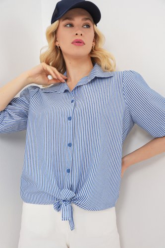 • Koszula w paski z wiązaniem z przodu 20323 - granatowa
