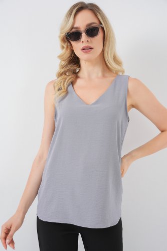 Bluzka z dekoltem w serek i zerowym rękawem 950 - Szara