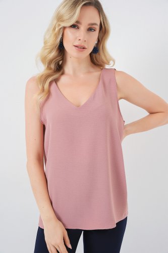• Bluzka z dekoltem w serek i zerowym rękawem 950 - Łososiowy