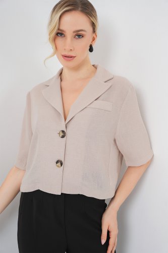 0706 Kurtka lniana Crop - beżowa