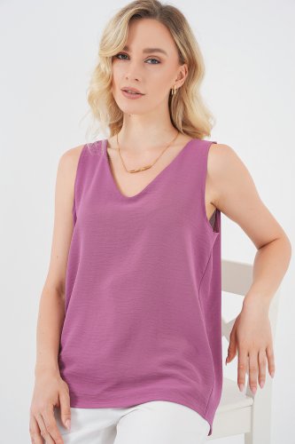 Bluzka z dekoltem w serek i bez rękawów 950 – Ciemny liliowy