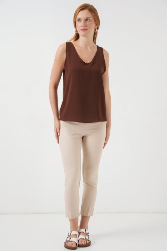 Bluzka z dekoltem w serek i zerowym rękawem 950 - brązowa