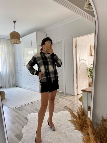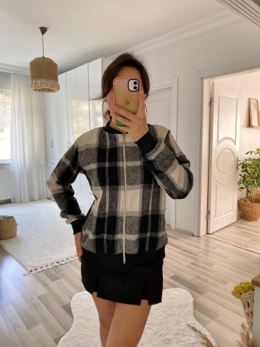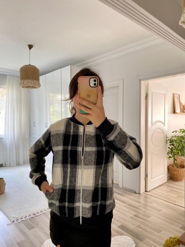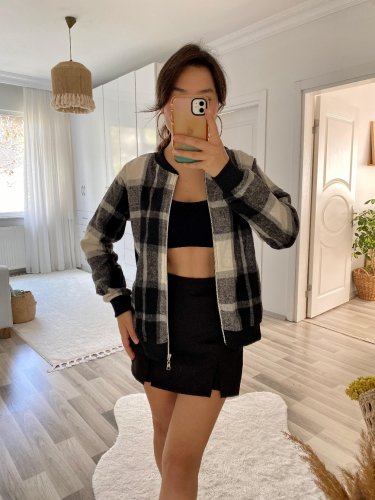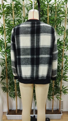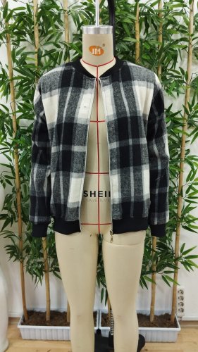 • Kurtka damska w kratę z długim rękawem i zamkiem błyskawicznym z przodu