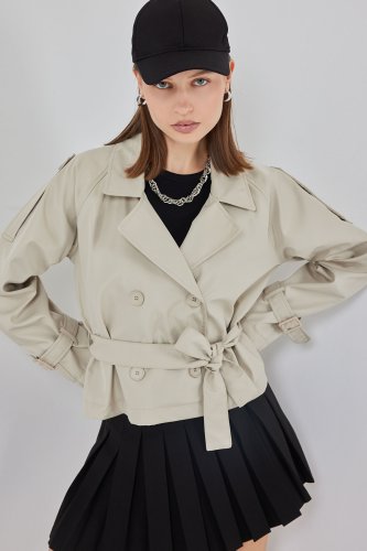 Krótki trencz z paskiem 5970 - Stone