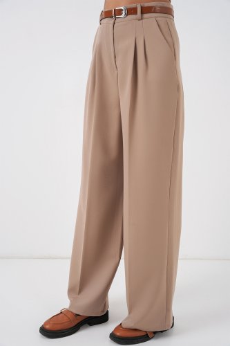 Spodnie palazzo z wysokim stanem 30051 - beżowe