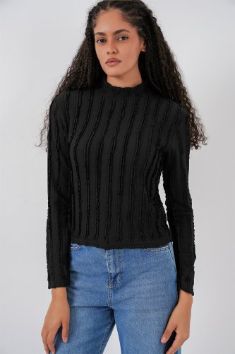 • Bluzka z elastycznej dzianiny teksturowanej 975 - czarna