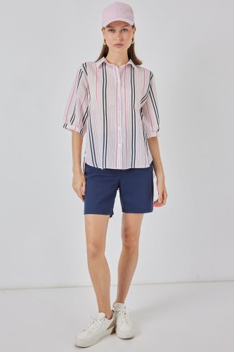 • Koszula w paski z krótkim rękawem 20345 - różowa