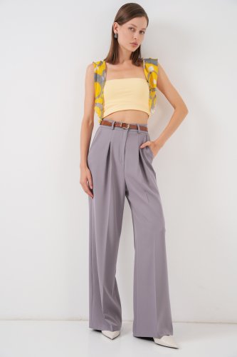 • Spodnie palazzo z wysokim stanem 30051 - szare