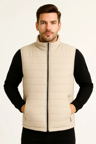 Męska kamizelka puchowa z zamkiem błyskawicznym, wodoodporna, pikowana, z podszewką, lekka, do sportów zimowych, wygodna, w kolorze beżowym