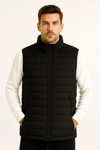• Męska kamizelka puchowa z zamkiem błyskawicznym, wodoodporna, pikowana, z podszewką, lekka, do sportów zimowych, wygodna, w kolorze czarnym