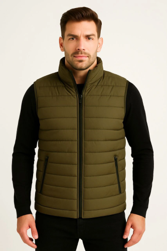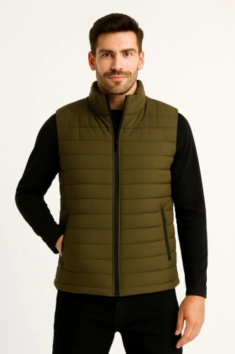 • Męska kamizelka puchowa z zamkiem błyskawicznym, wodoodporna, pikowana, z podszewką, lekka, do sportów zimowych, wygodna, khaki