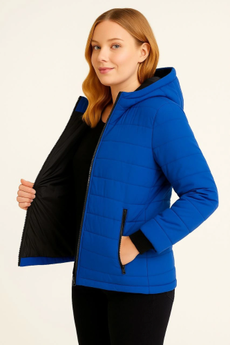 • Kurtka puchowa z kapturem, zapinana na zamek, wodoodporna, pikowana podszewka, kieszenie, wygodny krój na zimę – Saks Blue
