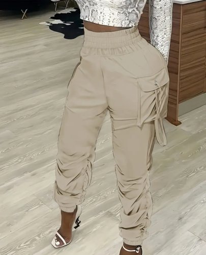 • Damskie spodnie gabardynowe z wysokim stanem i elastyczną kieszenią cargo