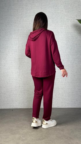 • Dwuczęściowy damski garnitur z długim rękawem, kapturem i sznurowanym kołnierzykiem z wiskozy, składający się z bluzki i spodni