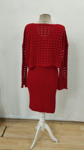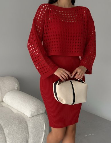 • Damski sweter z długim rękawem ażurowym, dzianinowy komplet na ramiączkach, dwuczęściowy