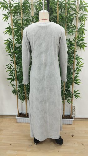 Damski trzyczęściowy komplet składający się z bluzki bez rękawów z okrągłym dekoltem, legginsów z wysokim stanem i długiego kardiganu, wykonanego ze szczotkowanej dzianiny ściągaczowej.