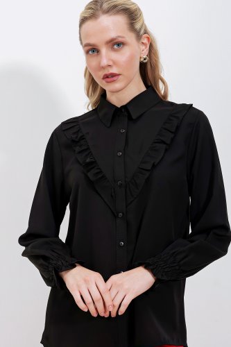 • 20223 Koszula z długim rękawem z falbanką – czarna