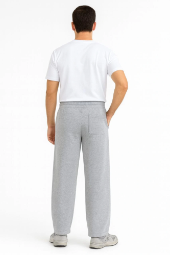 • Męskie spodnie dresowe z trzech nici bawełny, zimowe, oversize, ściągane sznurkiem, proste nogawki, kieszenie, sportowy i wygodny model - szary