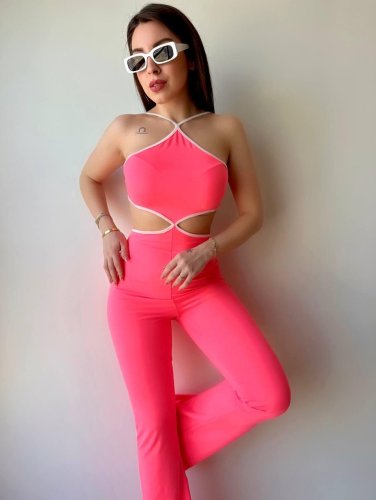 • Kombinezon damski z dekoltem halter i wycięciem w talii
