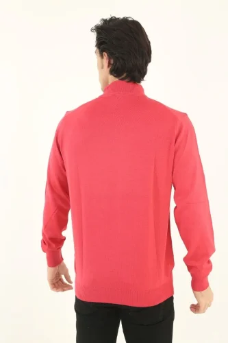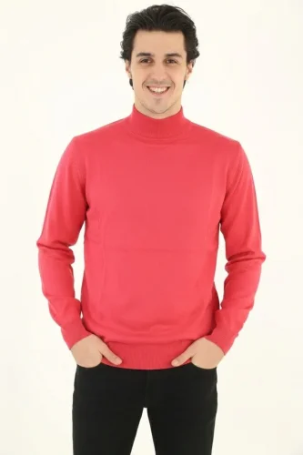 • Męski sweter z golfem, miękka, teksturowana bawełna o drobnym splocie, długie rękawy, wygodny, regularny krój - różowy