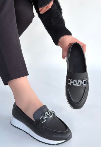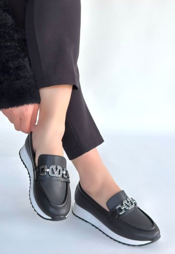 Otra Czarne skórzane baleriny