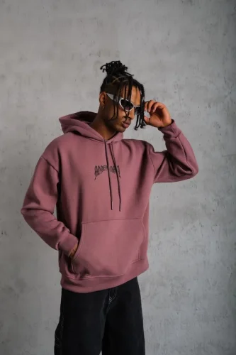 • Męska bluza z kapturem i nadrukiem ze ściągaczem – różowo-różowa